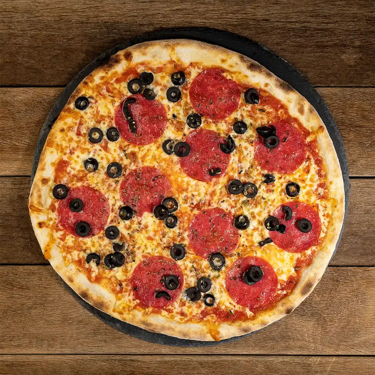 Tomate / mozzarella / pollo asado de Cassà / pimiento tricolor, patatas / aceitunas / cebolla