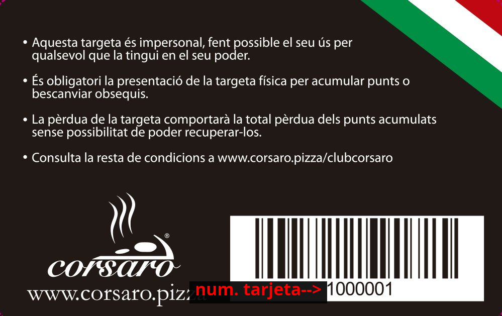 Para registrarte necesitas tener la targeta Corsaro y introducir tu numeracion en el formulario, el numero lo encontraras detras de la misma bajo el codigo de barras. (ver imagen de ayuda).